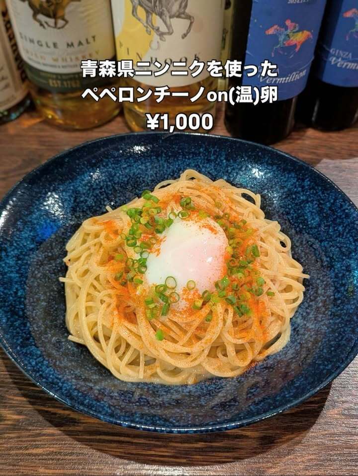 青森県産ニンニクを使ったペペロンチーノon(温)卵¥1,000
