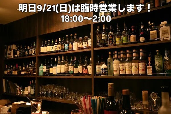 明日、9/21(日)は臨時営業いたします。18:00〜2:00