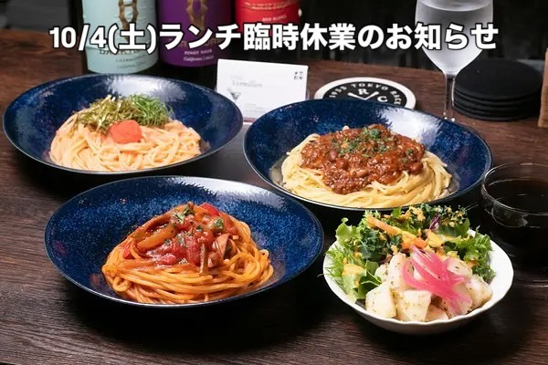 10/4(土)のランチは都合により臨時休業させて頂きます。